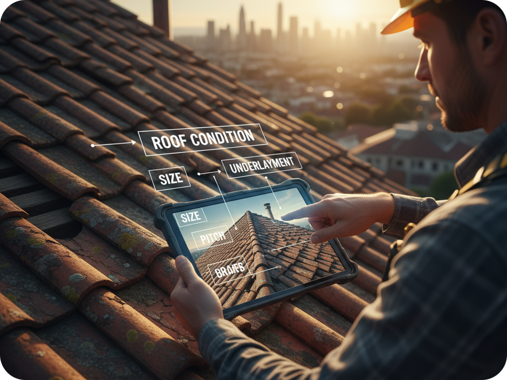 A detailed examination of the roof determines exactly what needs to be repaired and at what cost. Weathering, water stains, and tile damage expose the extent of the work. Older roofs typically require additional work, like reinforcing or replacing tiles that have become brittle with age, which increases the price.