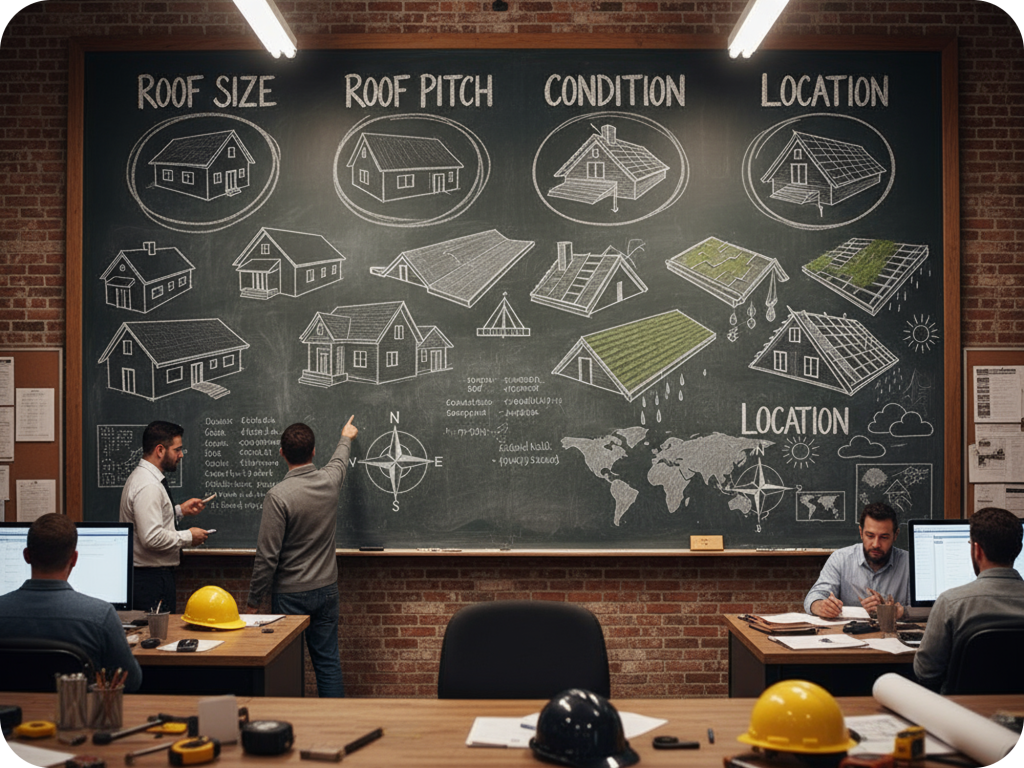 It’s about access. Single story home roofs are easier and less expensive to work on, whereas multi-level homes or tight spaces can drive costs higher for the additional safety measures.